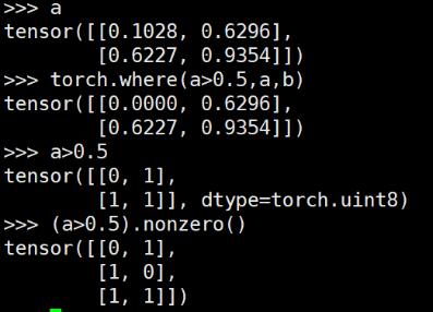 torch.where() 用于将两个broadcastable的tensor组合成新的tensor,类似于c++中的三元操作符“?:”