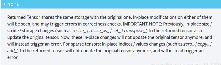 需要注意的是,返回的tensor和原tensor共享相同的存储空间,但是返回的 tensor 永远不会需要梯度