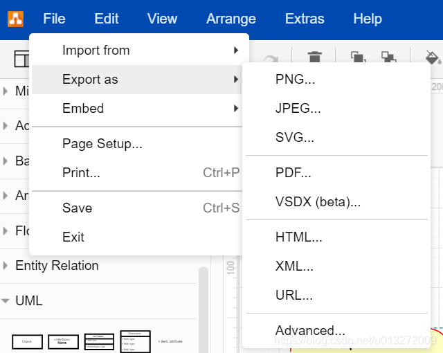 drawio 支持各种主流格式导出: