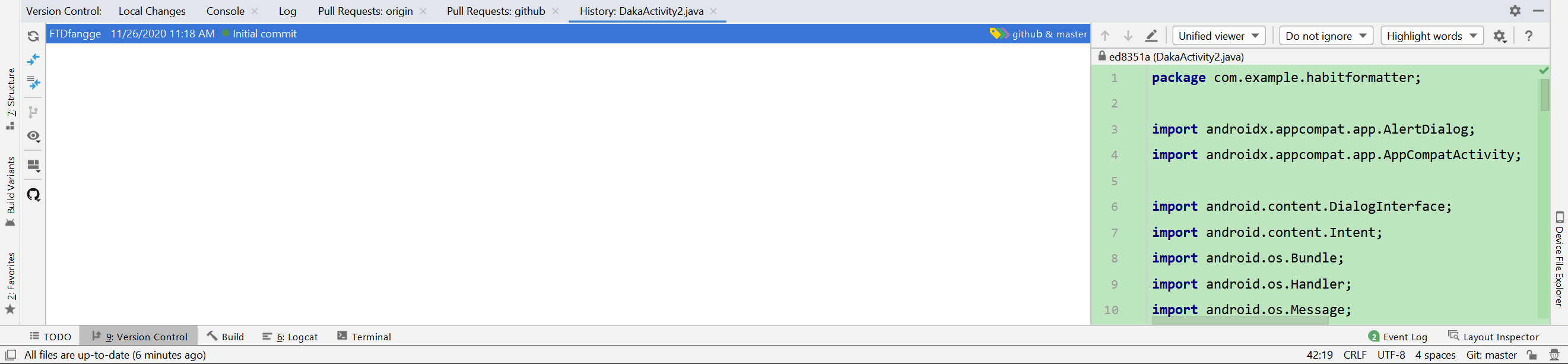 这里就能看到我们所有的更改记录,更改时commit的内容也会显示在这里,右边可以看到更改的详细内容