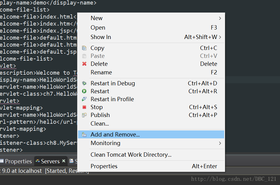 双击tomcat,进入调节,当然双击前必须先移除tomcat server中的项目,这样才可以更改其中的设置,如图: