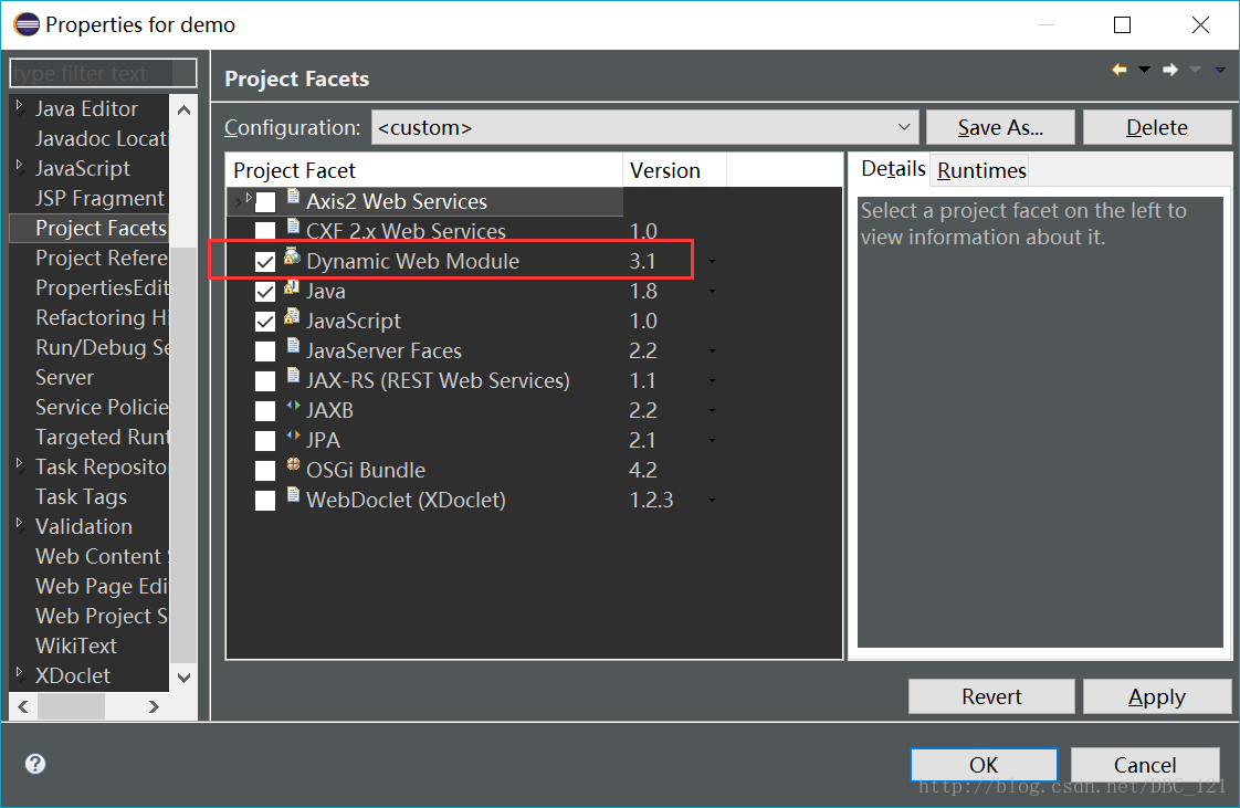 xml的版本问题,在eclipse编译器中右键项目—>properties—>project facets—>dynamic web module 如图: