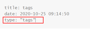 根据上面的路径,找到index.md这个文件,添加type: "tags"到内容中:
