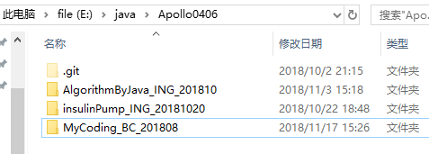 例如:apollo0406是存放所有仓库的文件夹名称。其下是3个已经克隆到本地的远程仓库: