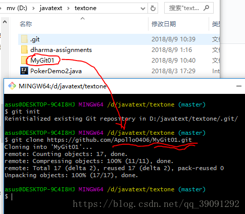 详细步骤:1.进入本地文件pokerdemo2所在目录下,右键点击git bash here