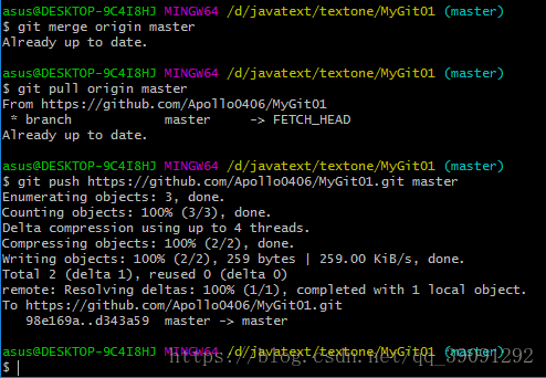 ->git merge origin master->git pull origin master->git push [https] master ->到此结束。