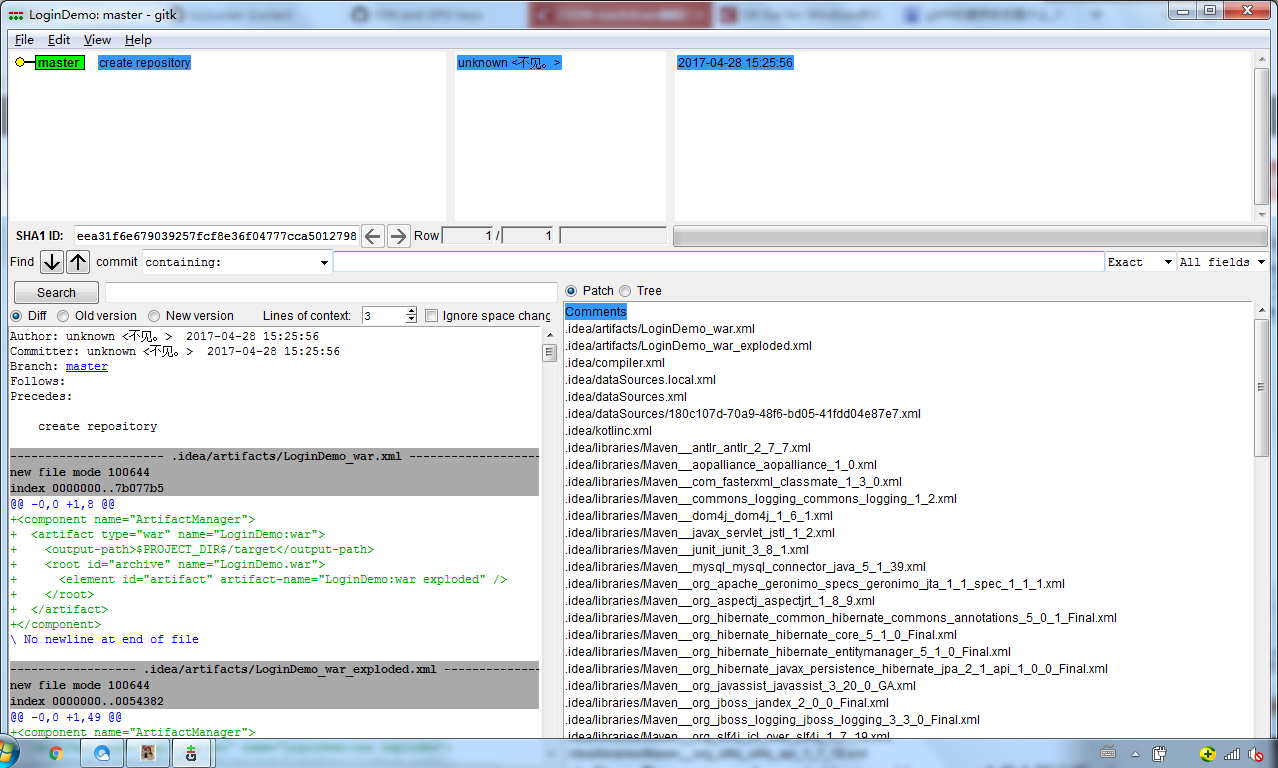 提交成功后,我们可以在repository->visualize all branches history中看到我们提交的历史记录(这是提交到本地而不是提交到远程服务器)。至此,本地版本库就创建成功了。