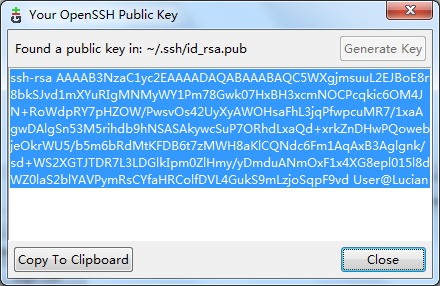 这种方式需要进行授权设置,在git gui的菜单栏,点击help->show ssh key->generate ssh key创建密钥。