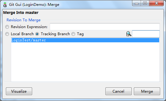 从远程fetch后,选择git gui的merge->local merge进行合并,选择tracking branch。