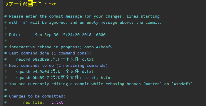 edit:保留该commit, 但我要停下来修改该提交(不仅仅修改注释)(缩写:e)