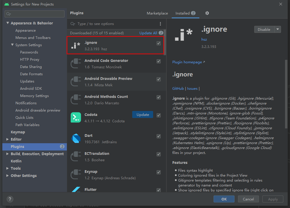 AndroidStudio自动生成SVN/Git .ignore配置文件