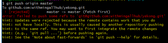 hint: see the 'note about fast-forwards' in 'git push --help' for details.