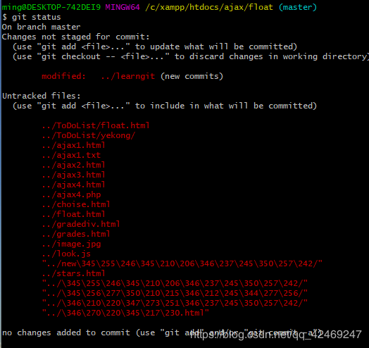 他说是因为远程仓库和本地仓库文件冲突,使用git pull --rebase origin master(拉取远程的文件把本地的覆盖,再上传)。然后再进行push,我这天真的小白,就深信不疑地使用了。第一次还真的成功了。还提交上去了。但是好景不长,我再次使用的时候(也可能是命令记错了),就变成了这样