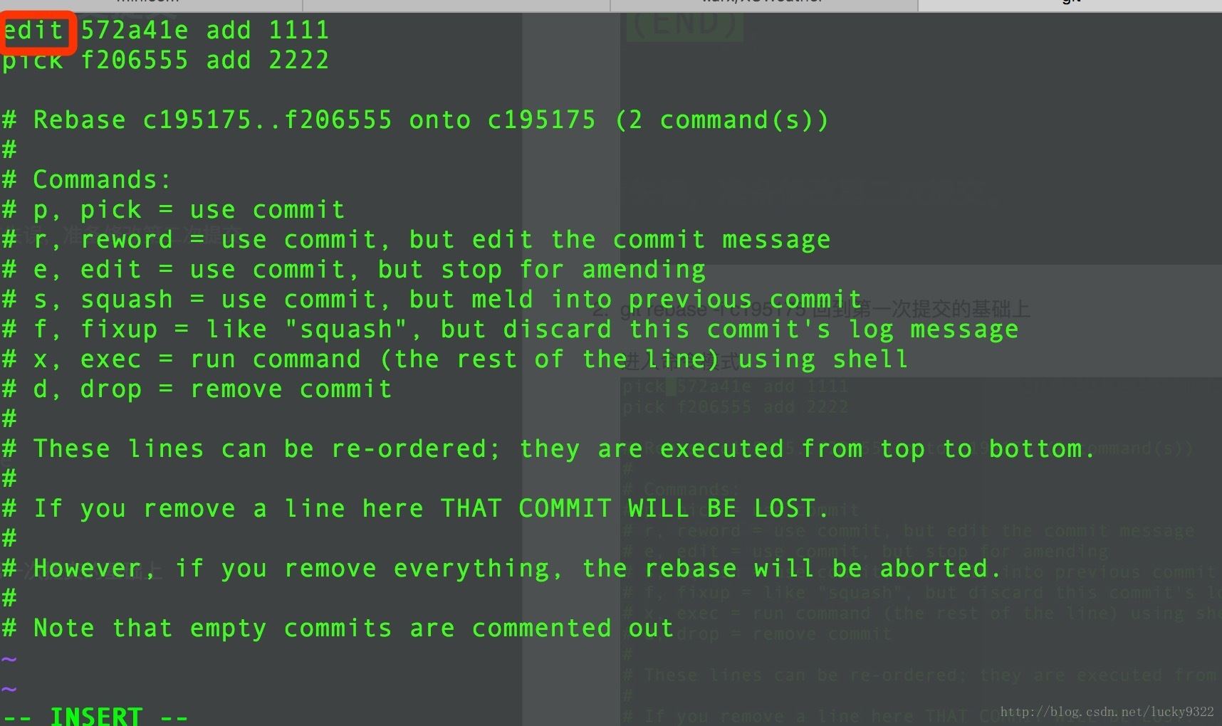 git rebase -i c195175 回到第一次提交的基础上