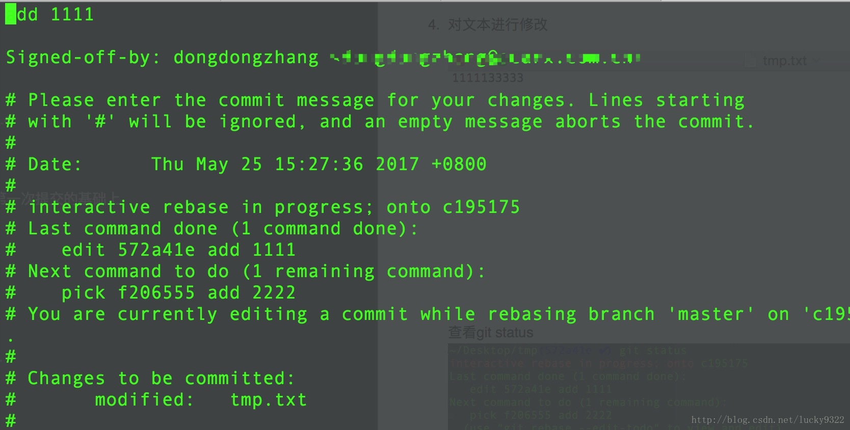重新看下git log 和当前的文本内容