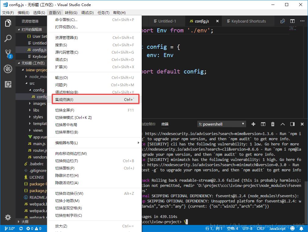1.开vscode使用ctrl+`或者点击查看到集成终端打开控制终端