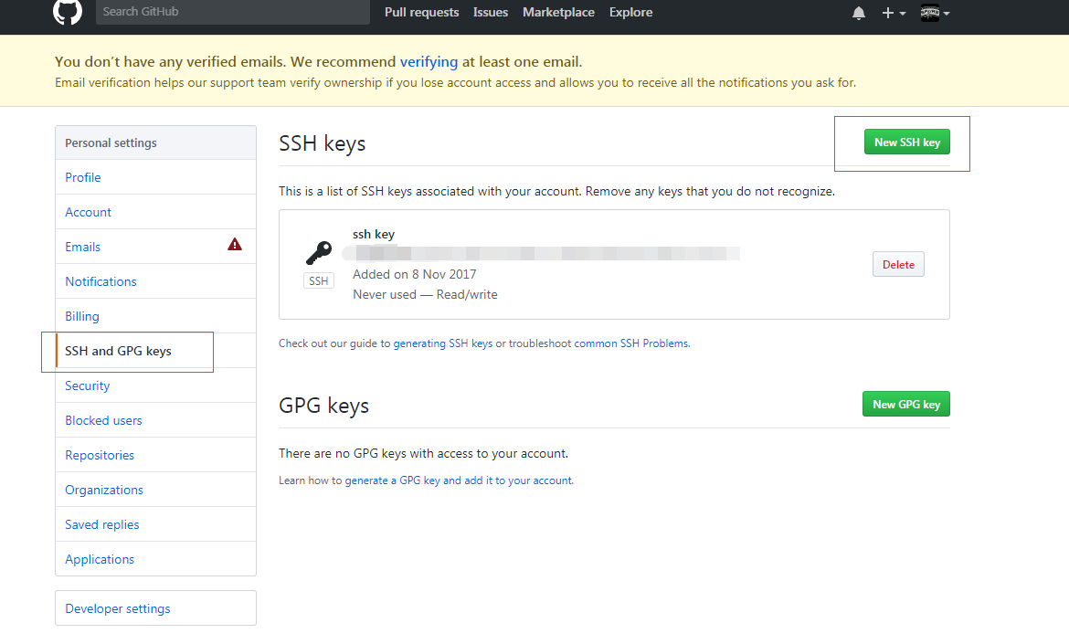 三:在github上添加自己的ssh key