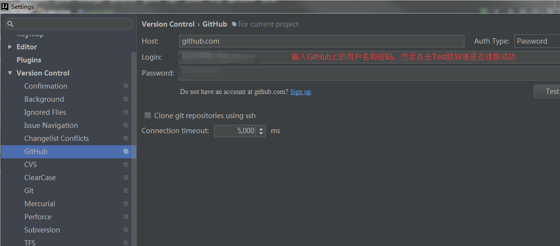 先点击file->setting->github然后出现如下界面
