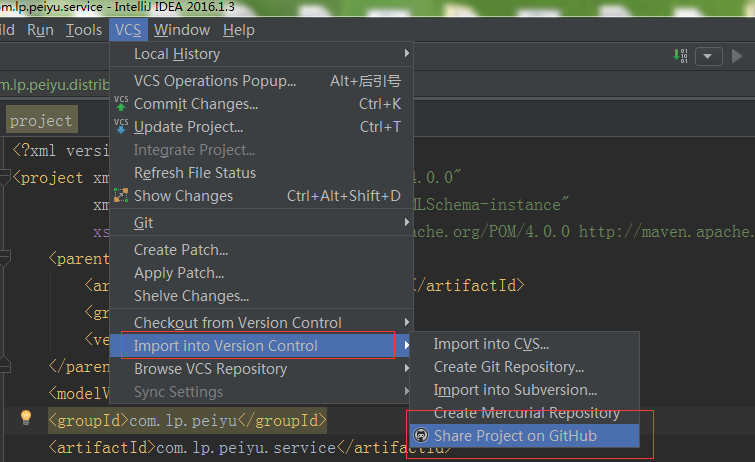 点击vcs将项目加入本地创库如下