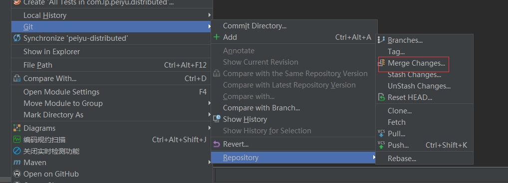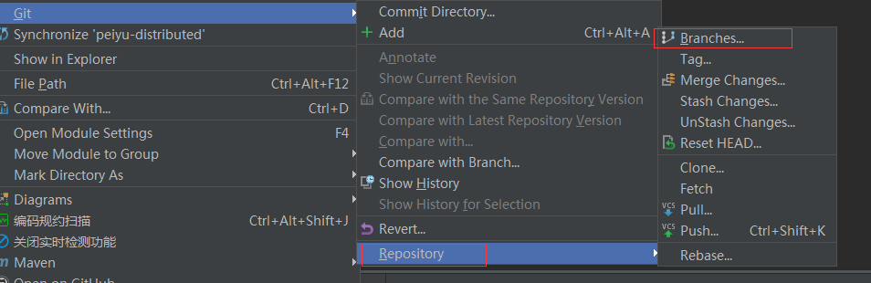右键点击项目找到git然后进行如下操作
