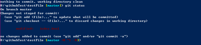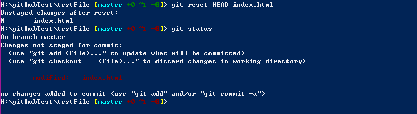 可以看到 index.html 修改了,但是还没有提交到暂存库,我们对这个文件进行撤销操作
