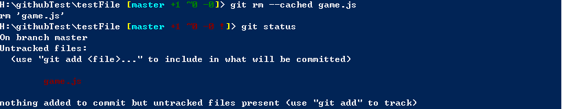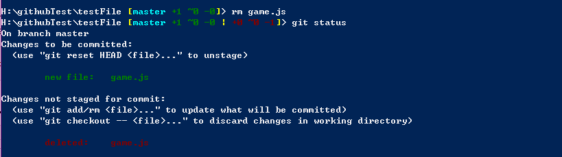 可以看到,工作区中的 game.js 删除了,但是暂存区中的 game.js 还未删除