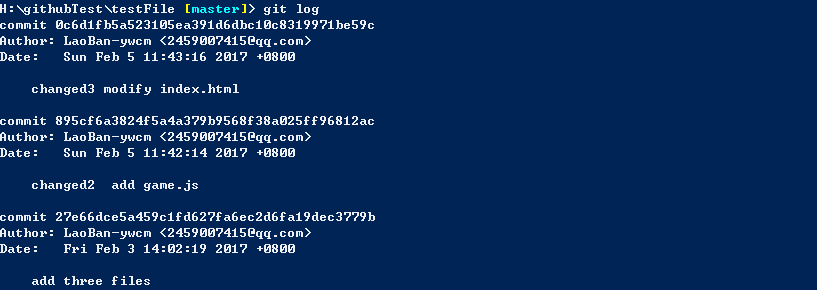 我在此之前,已经将三个文件提交到了版本库