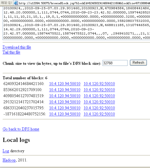 2、hdfs本身就是一个文件系统,在使用的时候其实不用关心具体的文件是存储在哪个节点上的。如果需要查询可以通过页面来查看,也可以通过api来实现查询。