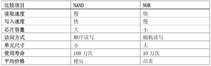 ● nor的读速度比nand稍快一些。