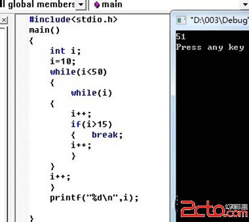 6.break语句结束的是当前循环不是所有的循环,比如两层的while循环,当然两层的while循环很少见到,一般都是两层的for循环。此时我们会发现最后i的输出值为51,而并非16,这个就是break语句的作用,结束的是当前的循环