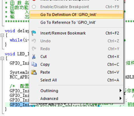 不懂得函数可以查阅官方的文件,举个例子,typedef定义了一个类型的结构体,起了个名字叫GPIO_IniTypeDef,用户需要自己创建这个类型的结构体。