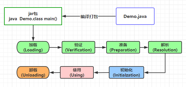 2.Demo类加载过程会经历以下过程: