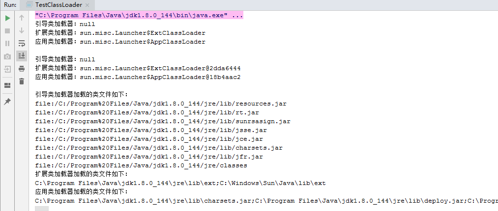System.out.println("扩展类加载器加载的类文件如下:");