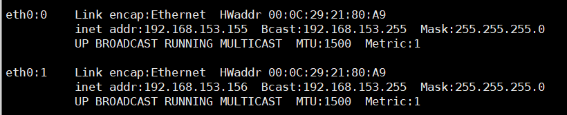 [root@localhost ~]# ifconfig eth0:1 192.168.153.156