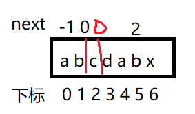 如果next中的值等于 -1 ,就说没有匹配成功,x 单独自增。让str1往后挪一位