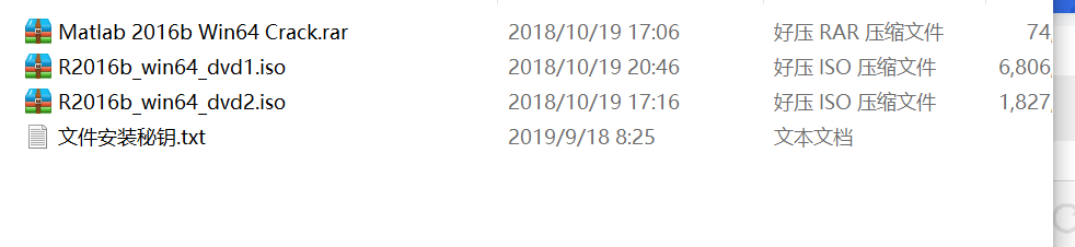 2,R2016b_win64_dvd1.iso和R2016b_win64_dvd2.iso两个文件均需要解压,解压时同时选中,单击右键解压,必须解压到同一个文件夹。(不解压到一个文件夹的后果就是安装到百分之六七十就会报错,,亲身实验--痛的领悟)