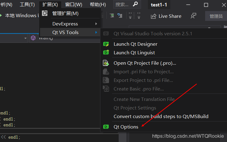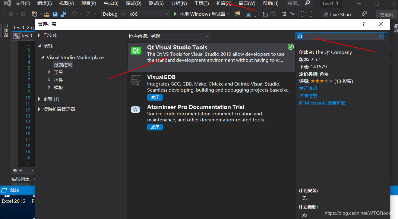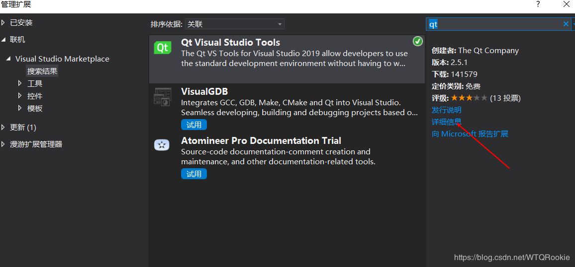 当你安装成功扩展就会发现扩展中已经出现qt vs tool 了