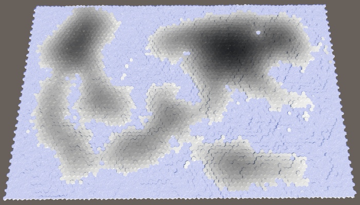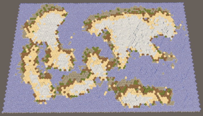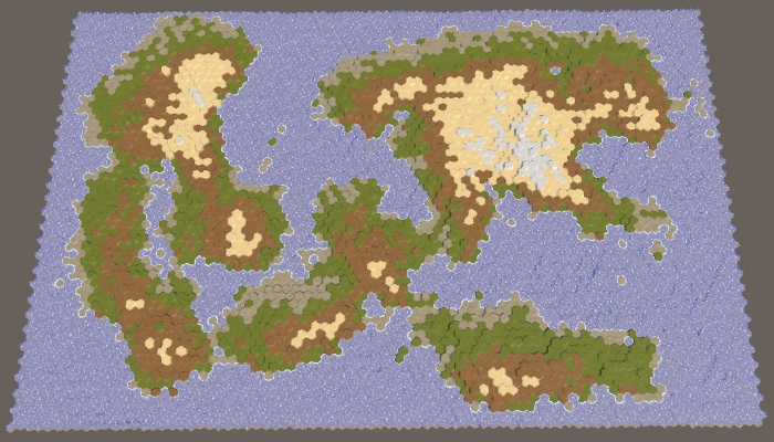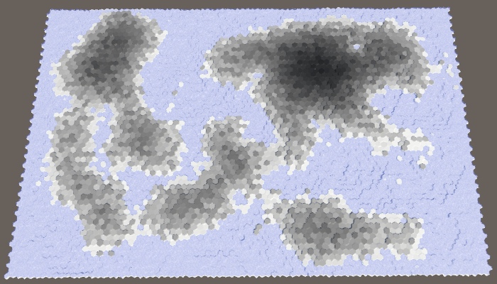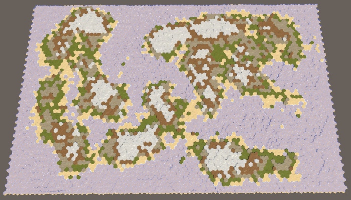 现在我们有了一个模拟部分水循环的效果。让我们整理一下,然后使用它来确定单元格的地形类型。