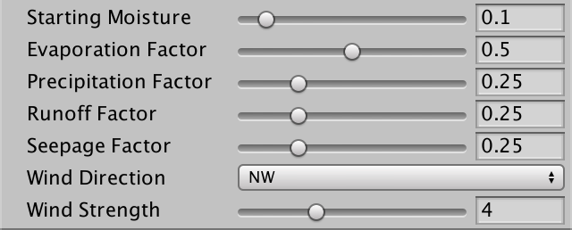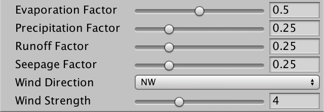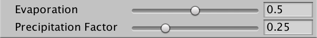 我们气候模拟的第一步是蒸发。应该蒸发多少水?我们用滑块来控制它。0表示完全没有蒸发,1表示最大蒸发。我们将使用0.5作为默认值。