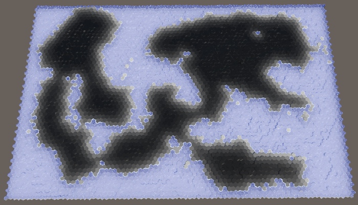 修改?SetTerrainType,这样我们可以看到云的数据,而不是单元格的高度。一开始,它看起来像一张黑色的地图。