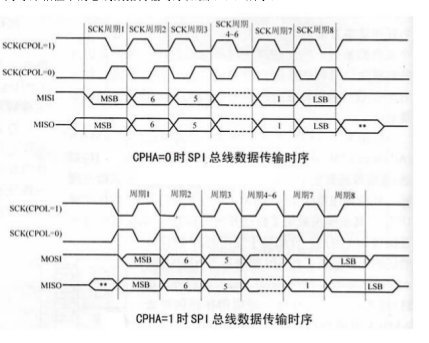 SPI 总线四种工作方式 SPI 模块为了和外设进行数据交换,根据外设工作要求,其输出串行同步时钟极性和相位可以进行配置,时钟极性(CPOL)对传输协议没有重大的影响。如果CPOL=0,串行同步时钟的空闲状态为低电平;如果 CPOL=1,串行同步时钟的空闲状态为高电平。时钟相位(CPHA)能够配置用于选择两种不同的传输协议之一进行数据传输。如果 CPHA=0,在串行同步时钟的第一个跳变沿(上升或下降)数据被采样;如果 CPHA=1,在串行同步时钟的第二个跳变沿(上升或下降)数据被采样。SPI 主模块和与之通信的外设备时钟相位和极性应该一致。