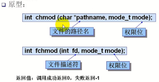 chmod和fchmod系统调用:用来改变给定路径名pathname的文件的权限位
