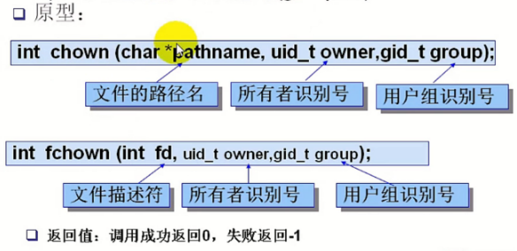 chown和fchown系统调用:用来改变文件所有者的识别号(owner id)或者它的用户组识别号(group ID)