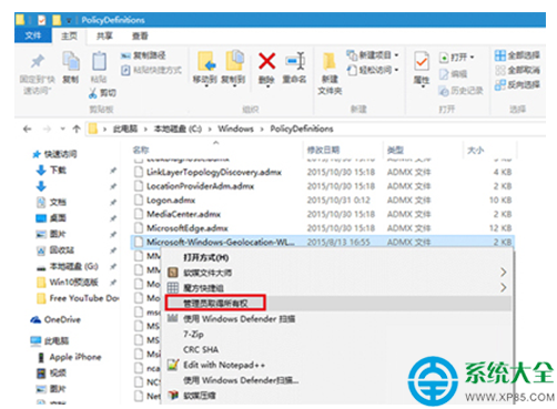 1、进入C:WindowsPolicyDefinitions,找到Microsoft-Windows-Geolocation-WLPAdm.admx文件并删除;