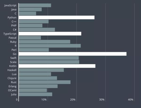 ?报告调查了开发者最想学习的开发语言,结果显示,Go语言、Kotlin语言和Python语言位列前三。