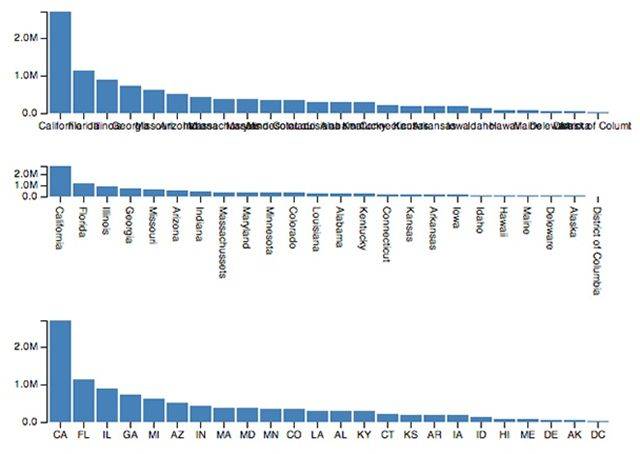 你也不需要对这些技能了解太多。对于初学者来说, 需要坚持一些最基本的原则, 比如, 尽量使用柱状图, 不要把圆半径设置按线性比例设定(编者: 在面积比较时会给用户错误理解), 设计要简单(不要用3D, 少用动画, 不要用阴影)等。 按照一些好的可视化样本, 初学者也可以创造出好的可视化作品来。