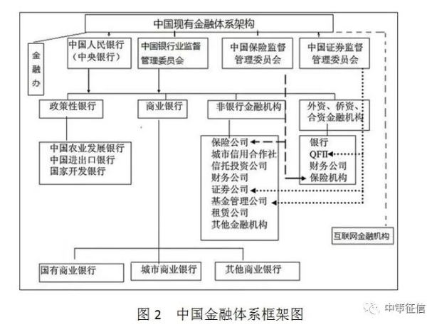信用交易数据是从事金融活动时所产生的数据,此类数据主要来源于金融服务机构。我国金融服务机构大体可以分为三类:金融机构、类金融机构和互联网金融机构,这三类机构构成了我国的金融服务体系。我国金融体系架构图如图2所示。