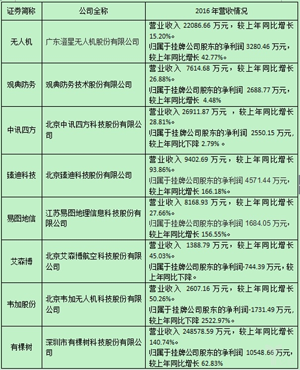 具体来看,除了军工大潮一直呈低调上升姿态外,植保无人机与消费无人机的发展都不尽如人意。多数企业的发展态势不错,受到资本寒冬的影响较小,在保持着相对稳定的规模条件下缓慢的增长着营业额,但是也有一些企业在2016年未能获得满意的答卷,甚至出现连续亏损的情况。而且除了无人机的生产制造商,相关上下游企业的发展趋势也不容小觑。