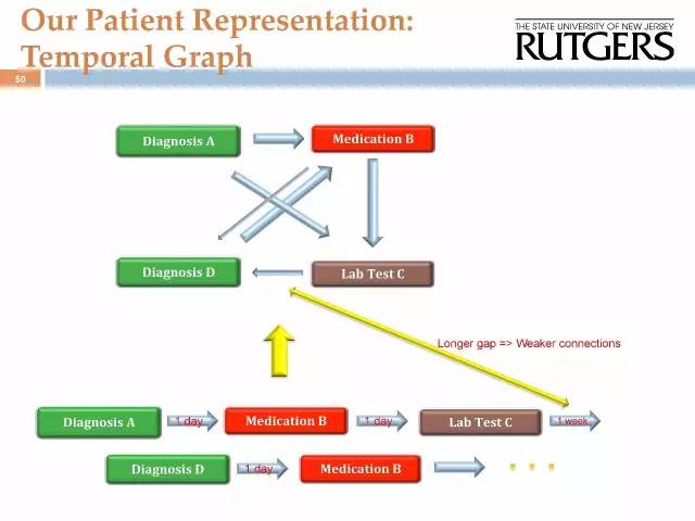 病人到医院之后要经过的流程:挂号-特征提取(验血等)-吃药-治疗-出院。我们聚焦的点是,通过信息的筛选,预测病人会不会得其它某些疾病。