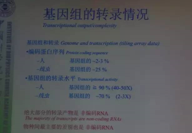 这个结果是百分之百肯定的,全世界的实验室毫无例外的找到非编码序列信息发放制造功能元件的信息,毫无例外,所以这样的工作,充分证明了这97%是实现重要的生物学功能的,为此我给大家举几个简单例子虽然这97%全貌不理解,但个别的例子,比如97%的一个产物可以导致所谓的前列腺癌。另外一个来自97%的可以导致白血病,另外一个来自97%的可以导致非小细胞肺癌。这三个例子说明什么?说明来自我们不知道规律的那97%依然能导致肿瘤,大家如果在座的临床医生专家的话,可以知道我们现在对肿瘤在医院当中诊断治疗,所有的对象只利用了3%的信息,从来没有那97%。现在有充分的例子说明,那97%也可以导致非常严重的疾病,如果不把它纳入疾病的诊断治疗当中来,精准又如何实现呢?